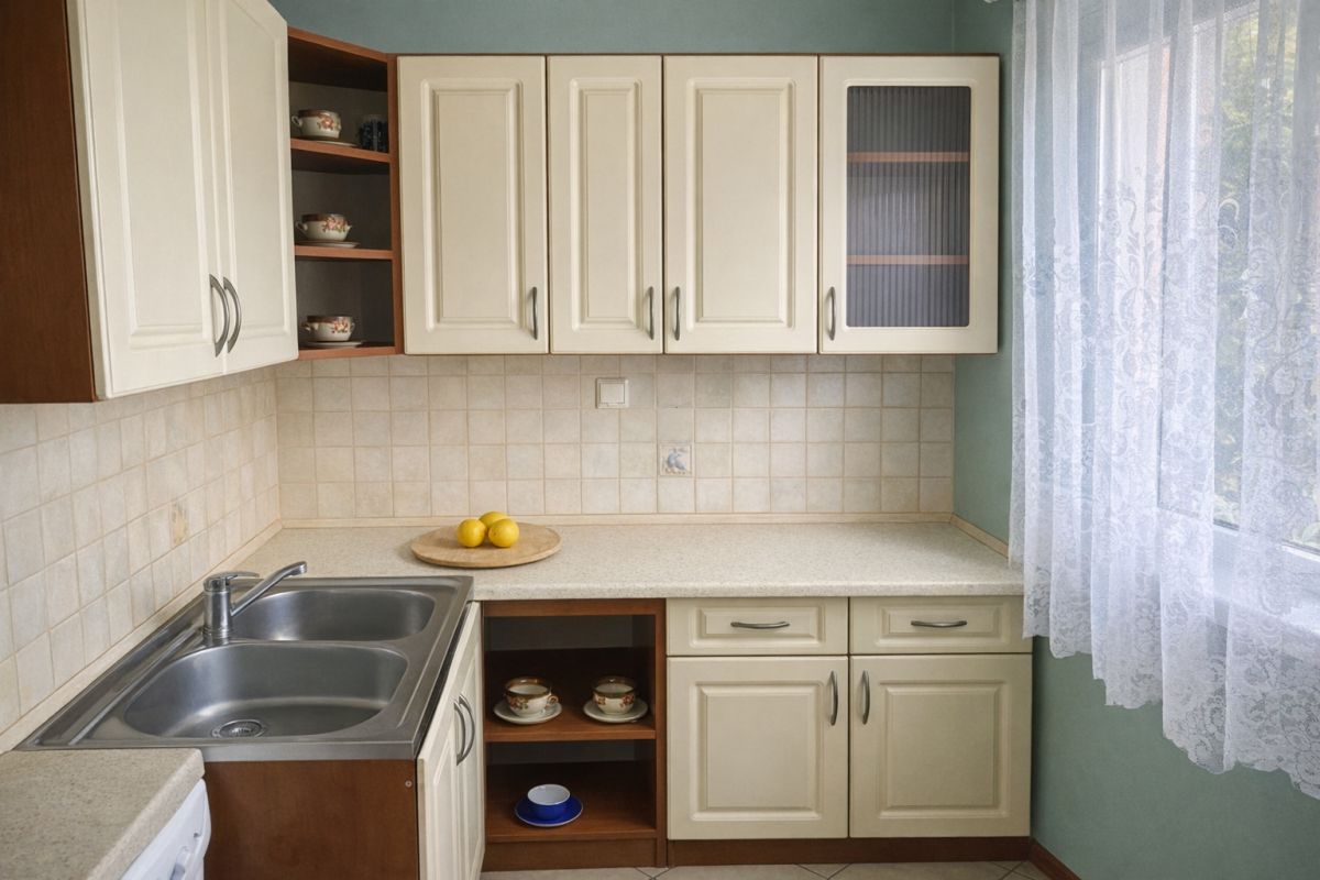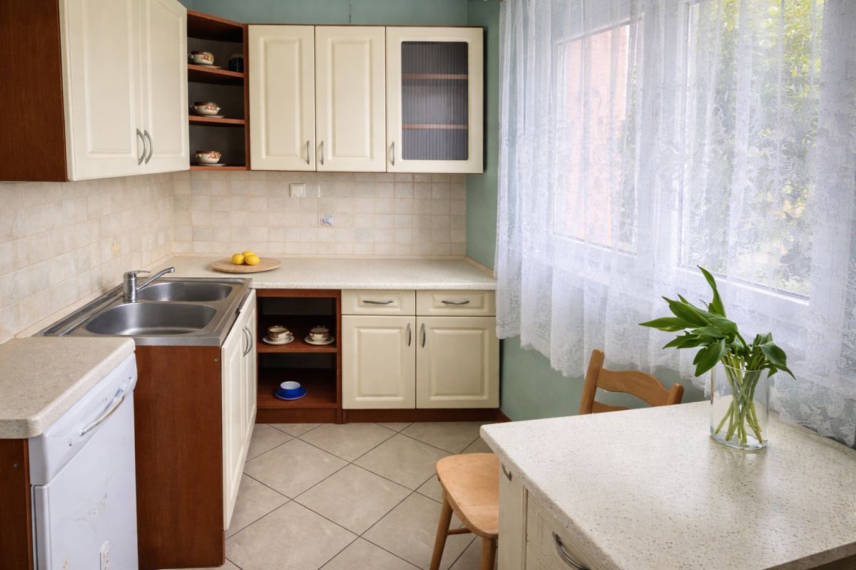 • Kuchnia z dużym oknem, zabudowana i wyposażona